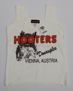 HOOTERS VIENNA AUSTRIA DONAUPLEX (S) SMALL OWL WAITRESS UNIFORM LYCRA TANK TOP