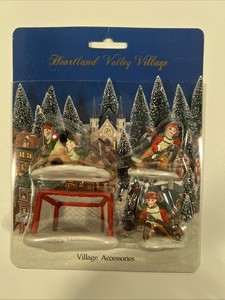 Christmas Heartland Valley Village Accessories Set of 4 Hockey Players *READ*