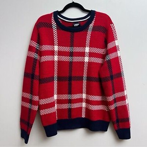 Lands End Mens Medium 38-40 Wool Blend Plaid Holiday Christmas Crewneck Sweater