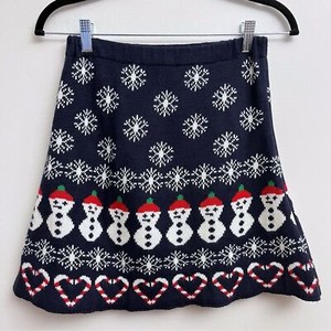 Derek Heart Christmas Holiday Snowmen Snowflake Knit A Line Skirt Women’s Small