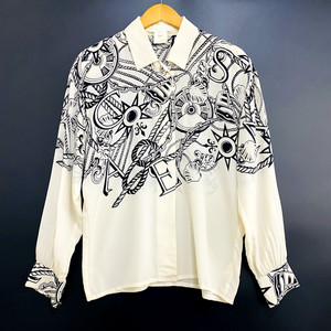 Escada By Margaretha Ley Blouse Women's Size 38 Beige Nautical Print Button Up