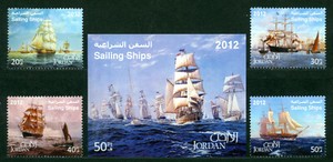 Jordan 2012, Sailing Ships, Boats, Sea, Ships, Set of 4 & M/S, 3603