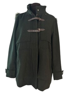 CoffeeShop New York 1X Hooded Pea Coat Wool Blend Faux Fur Dark Green