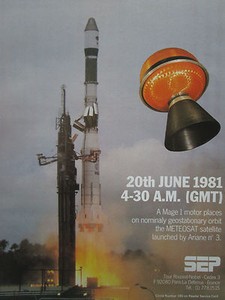 4/1981 PUB SEP PROPULSION SNECMA MOTEUR FUSEE ARIANE 3 SATELLITE METEOSAT AD