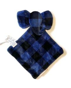 Blankets & Beyond Blue Black Elephant Buffalo Check Baby Blanket Flat No Face