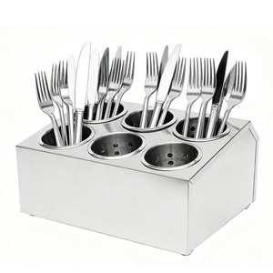 Commercial Utensil Holder, 6 Compartments Stainless Steel Cylinder Flatware S...