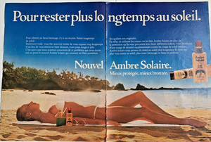 Garnier Ambre Solaire Sun Tan Lotion 1979 French Print Ad 9"x12"ea 2 Pages