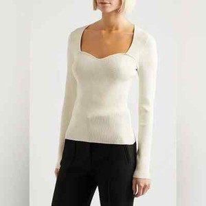 Veronica Beard Ivory Ribbed Long Sleeve Gladys Pullover Top $398 Size Small NWT!