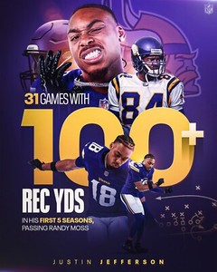 Justin Jefferson 100+ Receiving Yards Collage Minnesota Vikings 8x10 NFL Photo
