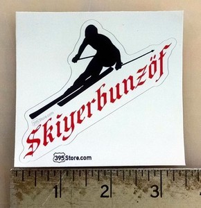 Snow Skier Skiing Boarder "Skiyerbunzof" "Ski Your Buns Off" decal 3.1"x2.9"