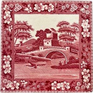 Copeland Spode's Tower Red Footed Trivet Square 6" Transferware Oval Stamp Vtg