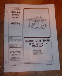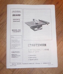 Good communication. There was a delay in shipping which was explained and accepted. The honesty and straightforwardness of the vendor is welcome and appreciated. The book is in excellent shape and was just what I needed for assistance with my saw.