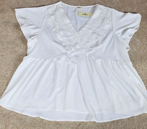 Agnes Orinda Women's Pullover Ivory Top Lacy Front Plus Size 4X NWTG
