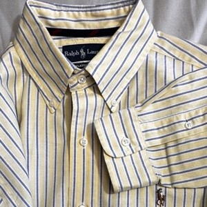 Ralph Lauren Mens Sz M Yellow Stripe Cotton Classic Fit Long Sleeve Shirt
