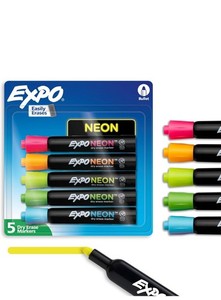 EXPO Neon Dry Erase Markers, Bullet Tip, Assorted Colors, 5-Count