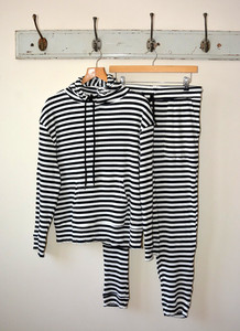 EX F & F CREAM+BLACK STRIPES RIBBED HOODIE+JOGGER TRACKSUIT SET SIZE S-M-L