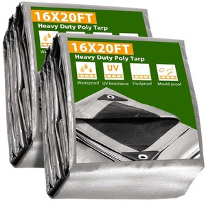 2 Pack 10 Mil 16'x20' Poly Tarp Protective Cover Tarpaulin Outdoor Weather Proof