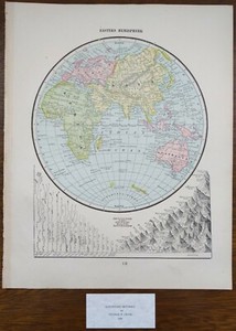 Vintage 1900 EASTERN HEMISPHERE Map 11"x14" ~ Old Antique Original AFRICA ASIA