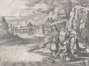 La fille de pharaon retire Moïse des eaux d'après Matthäus MERIAN gravure 1723