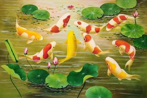 Nine Fishes -#1 , 24x36 - 100% Hand painted Oil Painting on Canvas