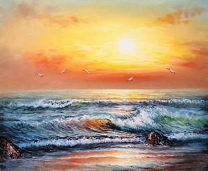Ocean Sunset #1, 20x24, 100% Hand Painted Oil Painting on Canvas