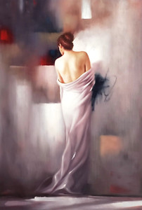 Woman with White Gown #13, 24x36,100% Hand Painted Oil Painting on Canvas