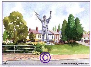 BROWNHILLS MINER STATUE WALSALL WATERCOLOUR ARTISTS PRINT GREETINGS CARD 8"x 6"