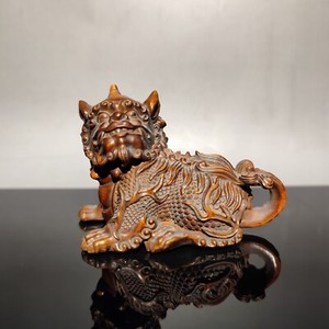 Fortune chinese boxwood handmade pixiu statue netsuke collectable hand piece