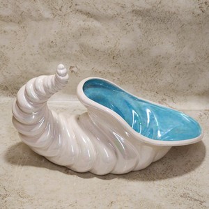 Vtg Atlantic Mold Ceramic Pottery Cornucopia Horn of Plenty White Irridescent 9"