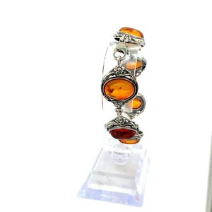 Vtg Sterling Signed 925 Floral Decor Cognac Amber Cabochon Link Bracelet 6 3/4