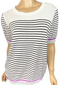 Joseph A Sz PXL Pullover Top Black & White Stripe Cotton/Rayon Purple/Green Trim