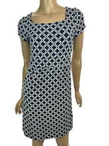 Charter Club Size Petite M Dress Black w/White Design Short Sleeve Nylon/Spandex