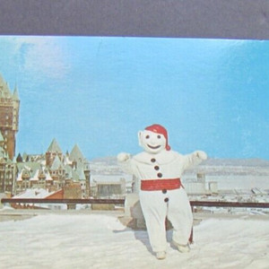 2 Vintage 1960's Carnival du Quebec Bonhomme & Ice Canoe Race Chrome Postcards