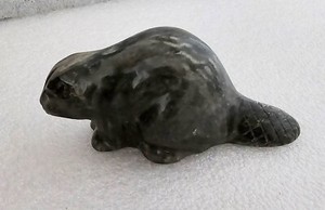 Vintage THORN CANADA ESKIMO INUIT ART Carved Beaver Stone Signed 6"