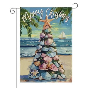 Merry Christmas Tree Beach Decorative Garden Flag,Beach Coastal Christmas Dec...