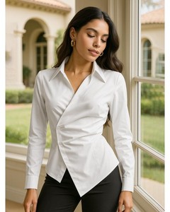 Everyday the Label Asymmetrical ButtonDown Blouse Women White Blouses & Shirts