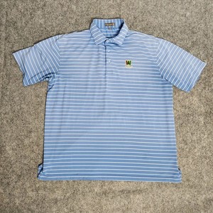 Peter Millar Golf Polo Shirt Men XL Blue White Stripe Pima Cotton Short Sleeve