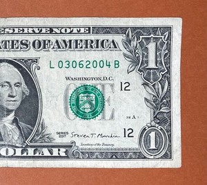 July 8, 2017 ; 7 August 2017 (L 07082017 M) $1 One Dollar Bill Birthday Note