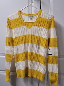 St. John's Bay Women's Sweater Size: Medium Classic V Neck Retro Yellow New