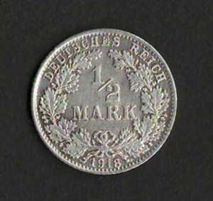 GERMANY 1918 Fine Silver Coin 1/2 Mark KM # 17 dc1