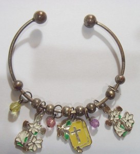 Nice vintage religious catholic Saint Mary faceted cabochons bracelet 54237