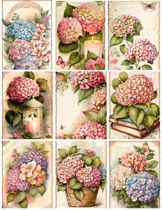 Set of 9 Vintage Shabby Chic Hydrangea Garden #1 STICKERS - Just Cut & Use!