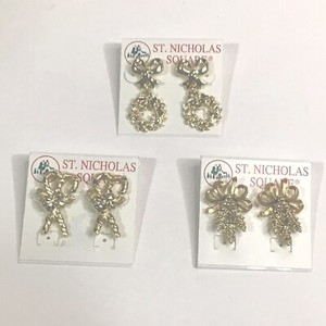 3 St. Nicholas Square Shiny Gold Christmas Earrings Wreaths Holly Candy Cane NEW