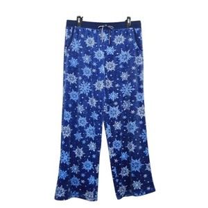 Nautica Lounge Pajama Pants Womens Medium Blue Fleece Snowflake Print Pockets
