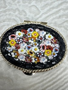 AUTHENTIC ITALIAN MICRO MOSAIC MILLEFIORI ROUND FLORAL PILL BOX N.R