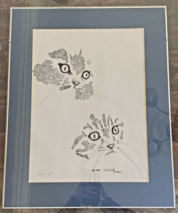 TWO CATS ~ Original 1980 Lmtd Ed Pen & Ink Lithograph 16"x12" hand Signed