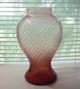 Burgundy Ribbed Swirl Glass Vase 11.5"H