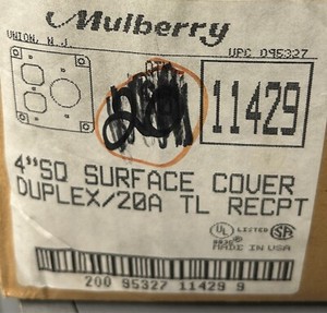 LOT OF 5 Mulberry 4" SQ Surface Cover Duplex/20A TL Recpt 11429