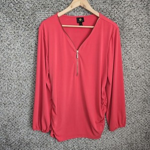 JM Collection Top Womens XL Coral Zip Up Blouse Ruched Side Stretch Casual