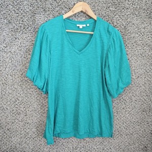 Chicos Top Womens 3 US XL Teal Slub Knit V Neck Short Sleeve Tee Casual Ladies